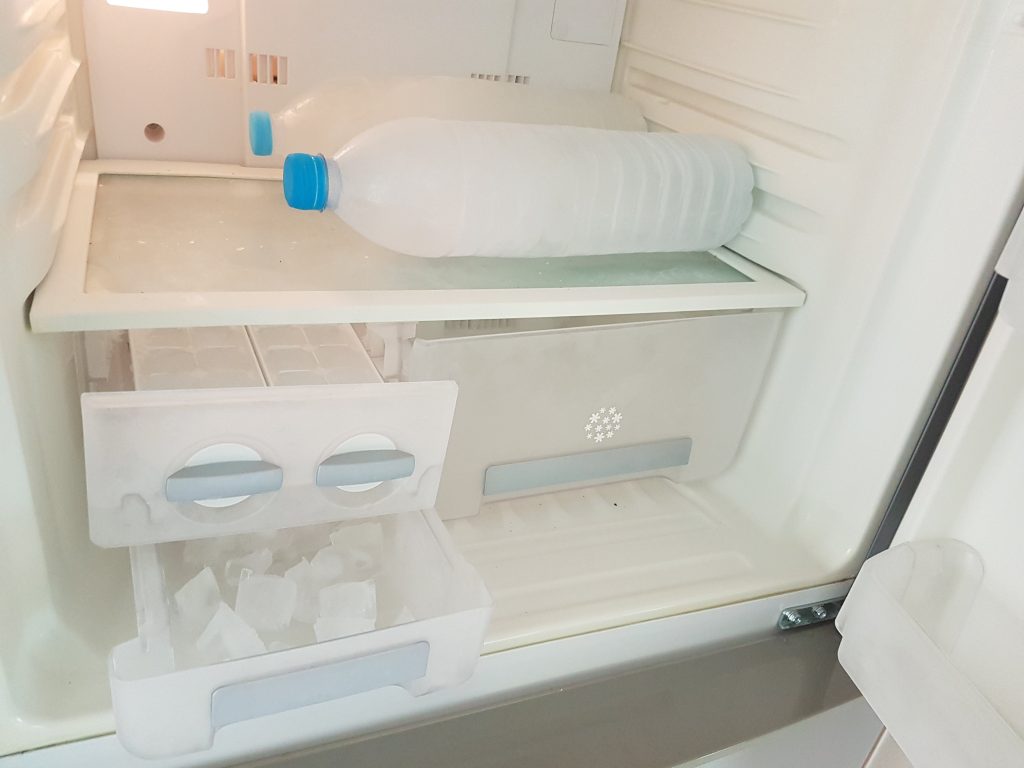I frysen finns det inbyggda fack för att frysa och förvara iskuber. Vi brukar ladda den flera gånger per dag för att alltid ha gott om is.