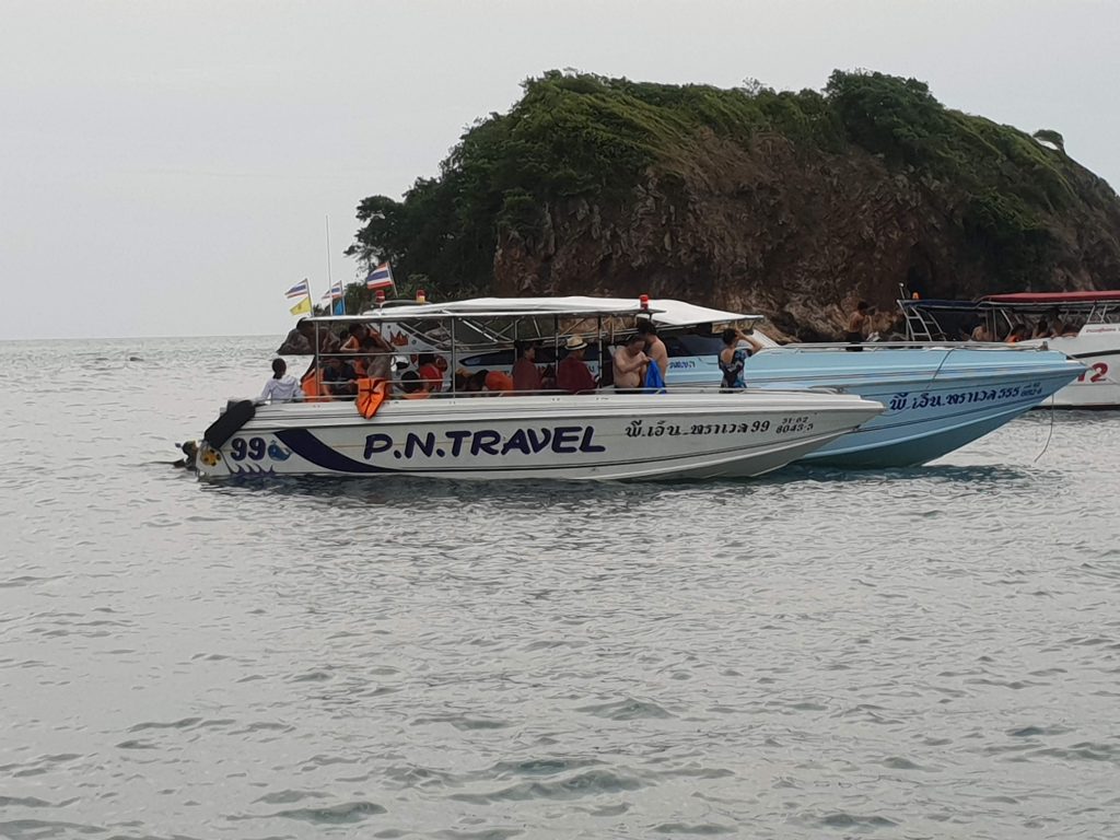 Vi har testat lite olika turer genom åren. Eftersom vi har ganska dåliga erfarenheter av utflykt med ”speed boat” från vår första resa till Thailand så undviker vi dem i möjligaste mån. Den resan slutade med ett brutet ben och en ganska omfattande upplevelse av thailändsk sjukvård. Från området kring Laem Mae Phim har vi inga egna erfarenheter som deltagare, men har ju sett en hel del både från stranden och andra båtar. Dessutom är vi grunden skeptiska till båtar som sjunker om man inte tar upp den över natten.