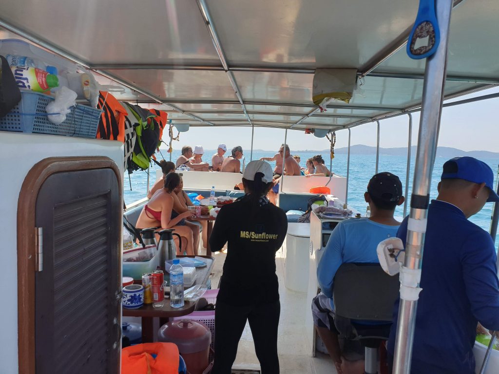 Båten har en för snorklingsturer välsorterad bar och en välfylld isbox med öl och läsk. Om man har barn som inte gillar kolsyra så är det enligt vår erfarenhet bra att ta med egen dricka till dem.