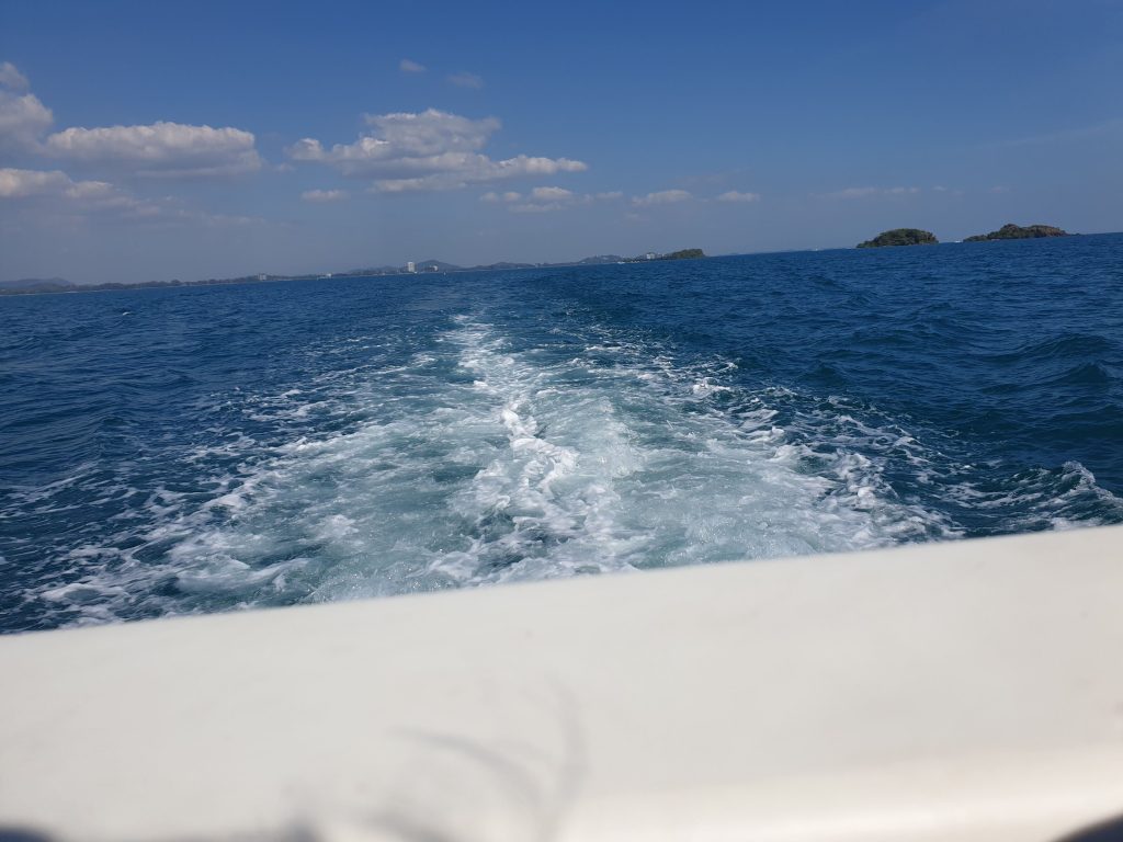 Tyvärr råder ofta ganska tät trafik av utflyktsbåtar, i synnerhet närmast Koh Samet. Det är många båtar med kraftiga motorer som river upp mycket slam i vattnet. Sikten kan vara riktigt usel, vilket inte verkar störa kineserna som gärna snorklar på rygg med dubbla flytvästar.